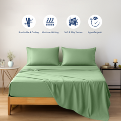Upgrade your bedroom with the elegance of Soft Sewn’s Premium Bamboo Polyblend Microfiber Sheets. Designed in a cooling, silky-smooth fabric, this bed sheet set combines everyday durability with hotel-quality comfort.